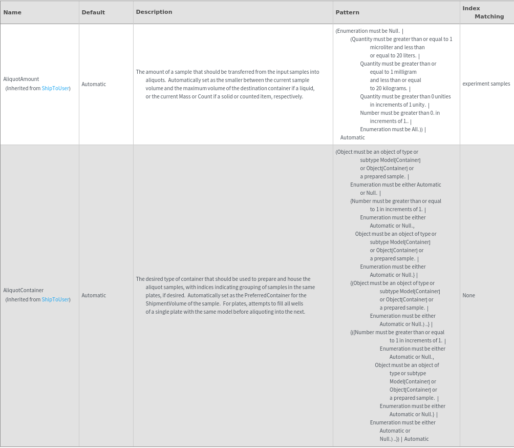 Indicate if aliquots should be taken from the samples found in input containers and prepared to be used in lieu of the SamplesIn in the transaction. If aliquoting, you must specify a valid combination of aliquot options to indicate how the samples should be prepared: