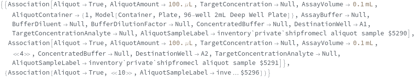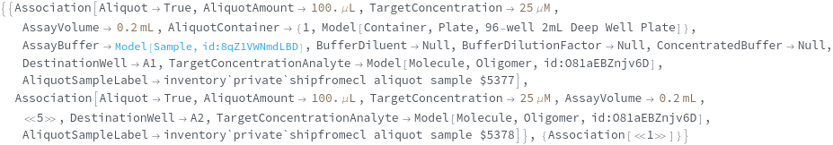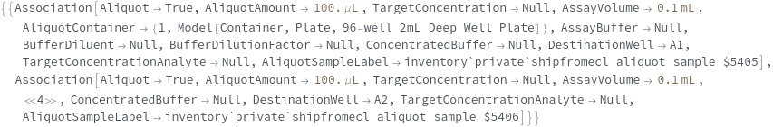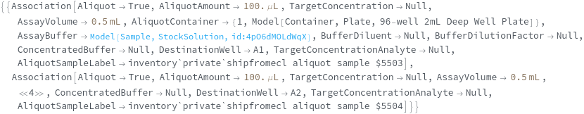 Specify the desired total volume of the AliquotSamples. After transferring the aliquot volume of the input sample, ShipmentBuffer will be added up to this volume: