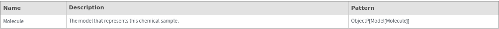returns a model Molecule that contains the information given about the chemical sample.