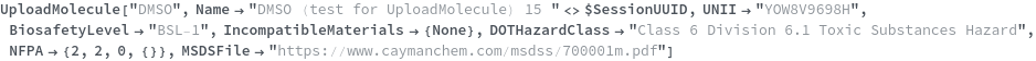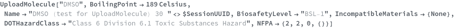Use the DOTHazardClass option to set the DOT Hazard Class of this uploaded chemical. The valid values of this option can be found by evaluating DOTHazardClassP. The following chemical is part of DOT Hazard Class 9: