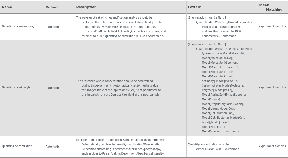 Returns an error if QuantifyConcentration is set to False and a QuantificationWavelength has been provided: