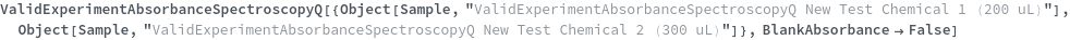 ValidExperimentAbsorbanceSpectroscopyQ[samples]bools
