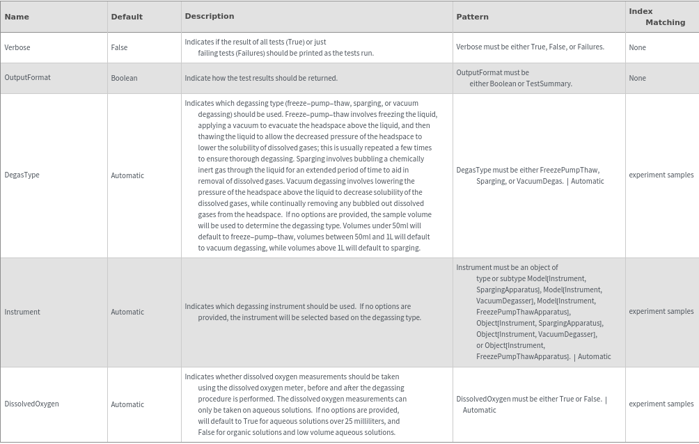 ValidExperimentDegasQ[samples]boolean