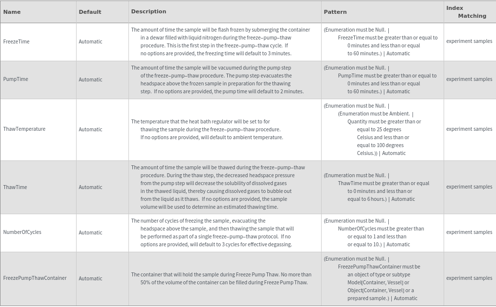 Freeze-Pump-Thaw Options