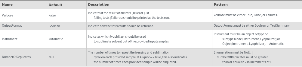 - This function runs a series of tests to ensure that the provided inputs/options, when passed to ExperimentLyophilize proper, will return a valid experiment.