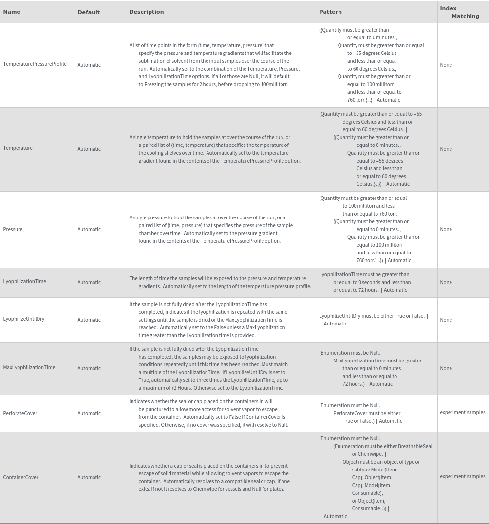 ValidExperimentLyophilizeQ[samples]⟹boolean