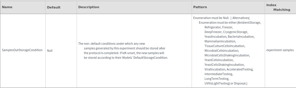 SampleStorage Options